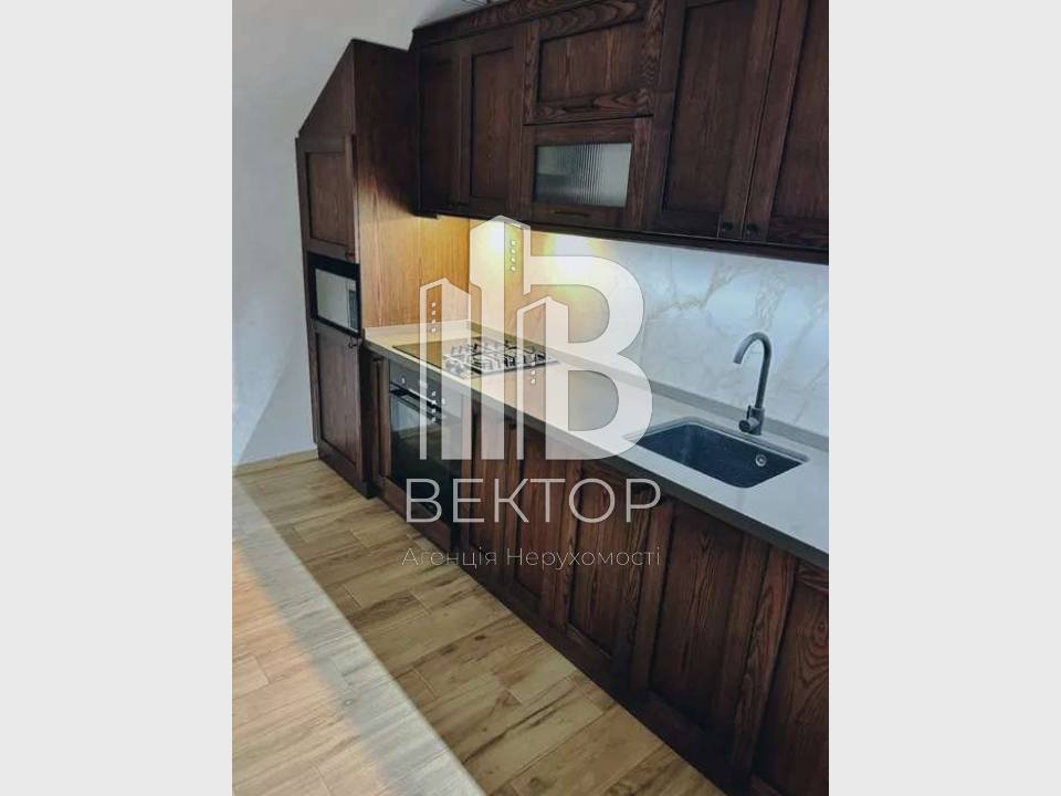 • Простора кухня-студія з великим панорамним вікном.