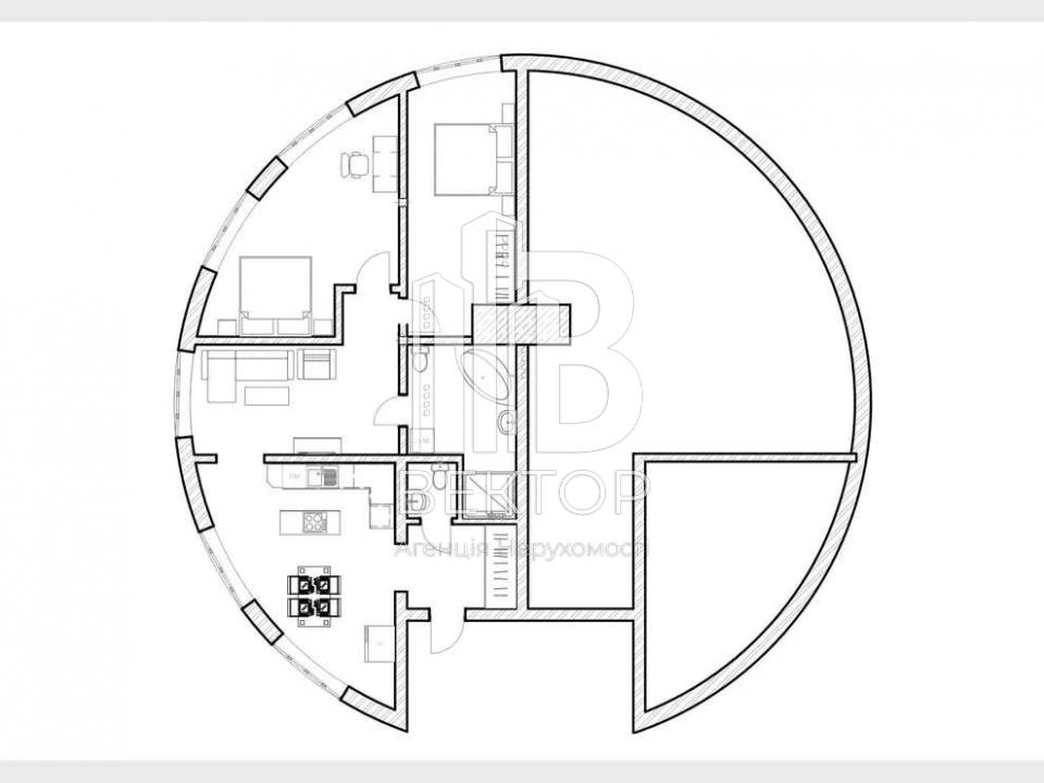 Планування: вільне планування, що дозволяє реалізувати власний дизайн-проєкт, змінювати кількість кімнат та зонування простору. Передбачено 2 і більше санвузлів, площа кухні — 16 м².